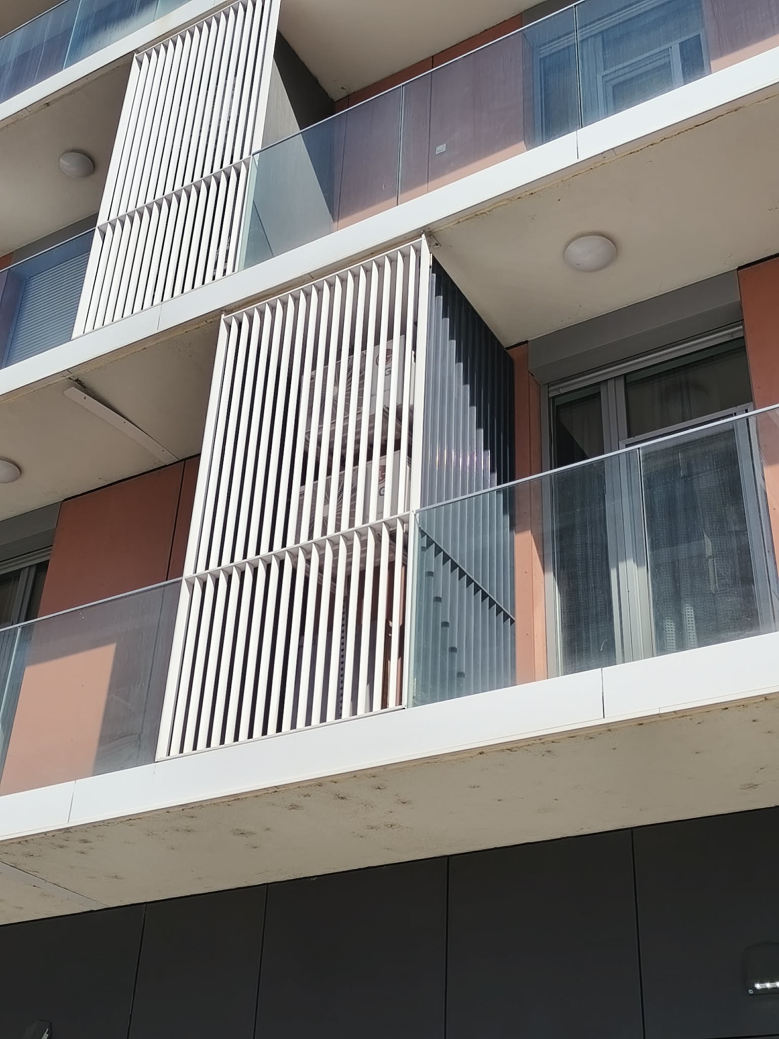Syba Screen95 kültéri textil ablaknapellenzőink díszítik az épületek homlokzatát, eltérő színekben.